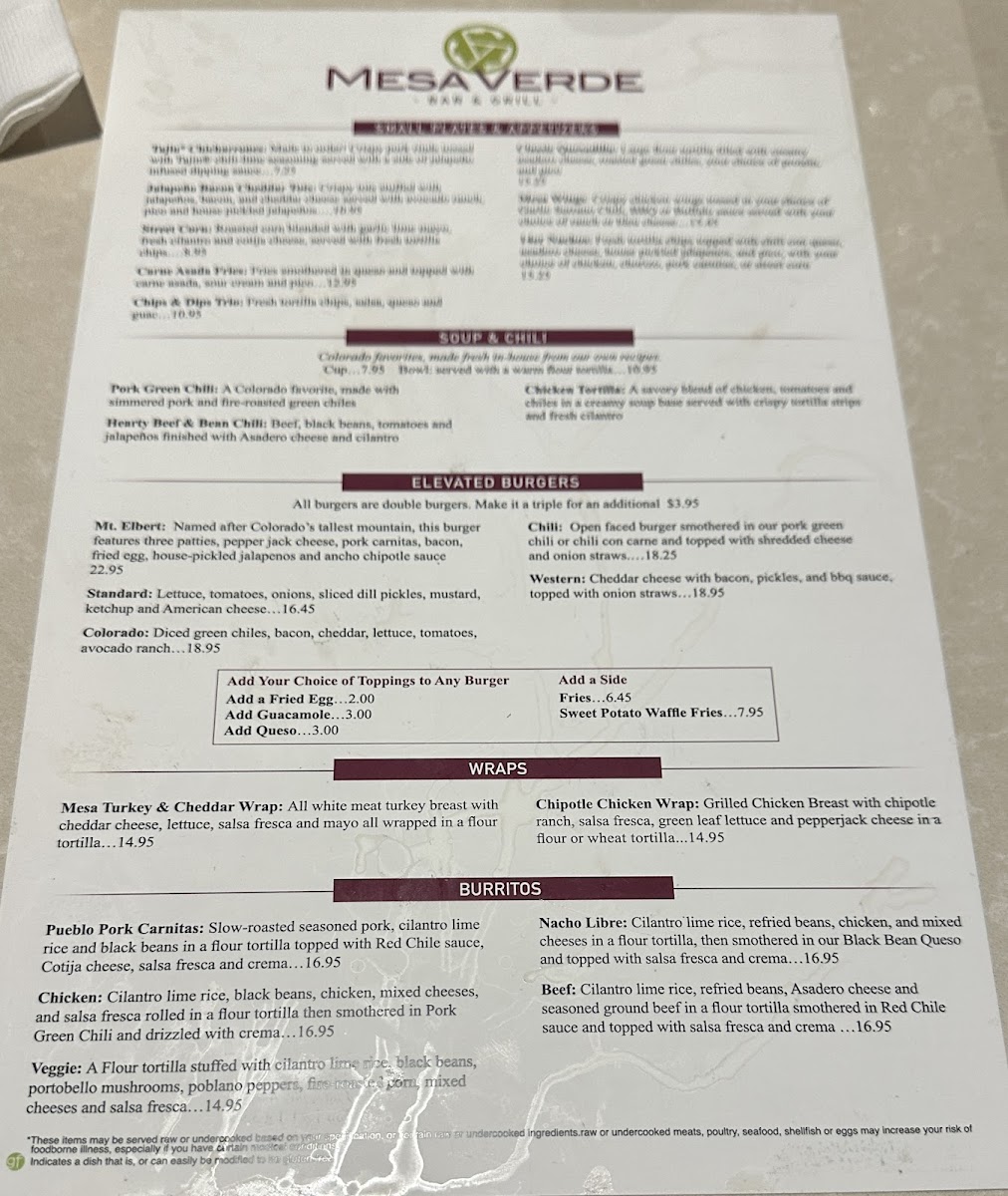 Mesa Verde Bar & Grill Menu